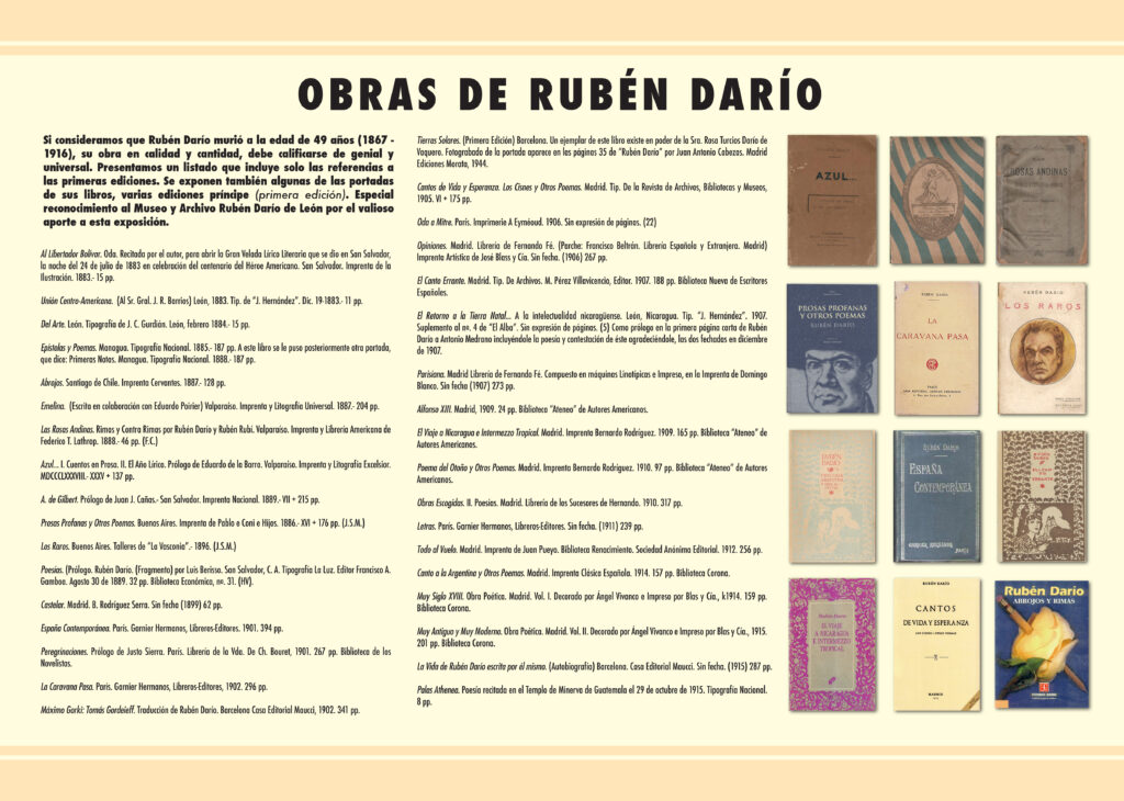 El Museo y Archivo Rubén Darío de la ciudad de León, Nicaragua, fue creado por medio del Decreto Ley No. 477 del 17 de marzo de 1960 y su posterior reforma por medio del Decreto Ley del 21 de enero de 1963, abriendo sus puertas el día 6 de febrero del año 1964. El Museo y Archivo Rubén Darío, fue creado con el principal objetivo de resguardar, proteger y divulgar, el Patrimonio Literario - Documental del Poeta Rubén Darío (1867-1916), Líder del Modernismo, movimiento literario surgido en América a finales del Siglo XIX.